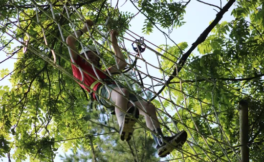 Challenge yourself on our course with 11 elements, which requires closed-toe shoes and two staff members for your safety.